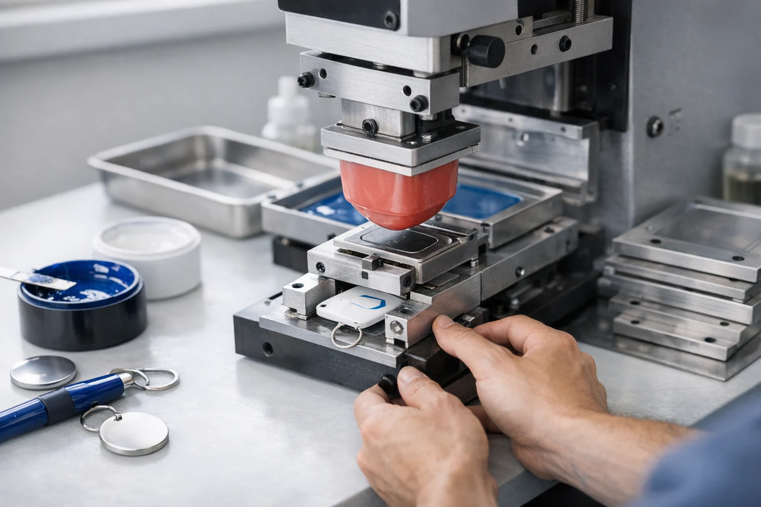 Tampodruk to technologia nadruku, która świetnie radzi sobie z nierównymi powierzchniami. Jest często wybierana do znakowania gadżetów reklamowych, takich jak długopisy, breloki czy elementy z tworzyw.