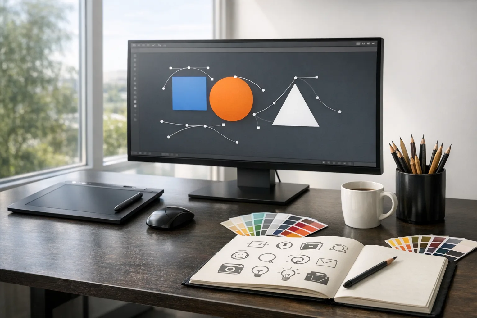 Najkrótsza definicja brzmi tak: grafika wektorowa to obraz zbudowany z linii, krzywych i kształtów, który można skalować bez utraty jakości. Dla zamawiającego oznacza to jedno praktyczne następstwo: to samo logo może wyglądać ostro zarówno w bardzo małym rozmiarze, jak i na dużym nośniku, o ile sam projekt jest poprawnie przygotowany.